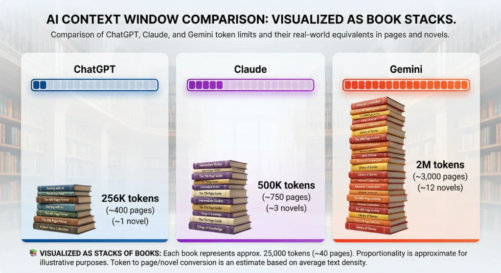 The context window determines how much information the AI can process at once. This matters hugely for long documents, codebases, and research.